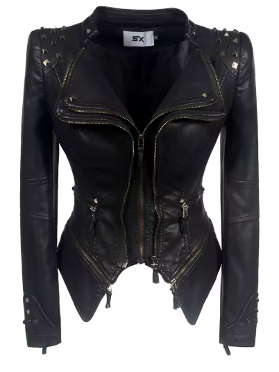 Short Zippered Leather Jacket for Women – Perfect for Fall & Winter