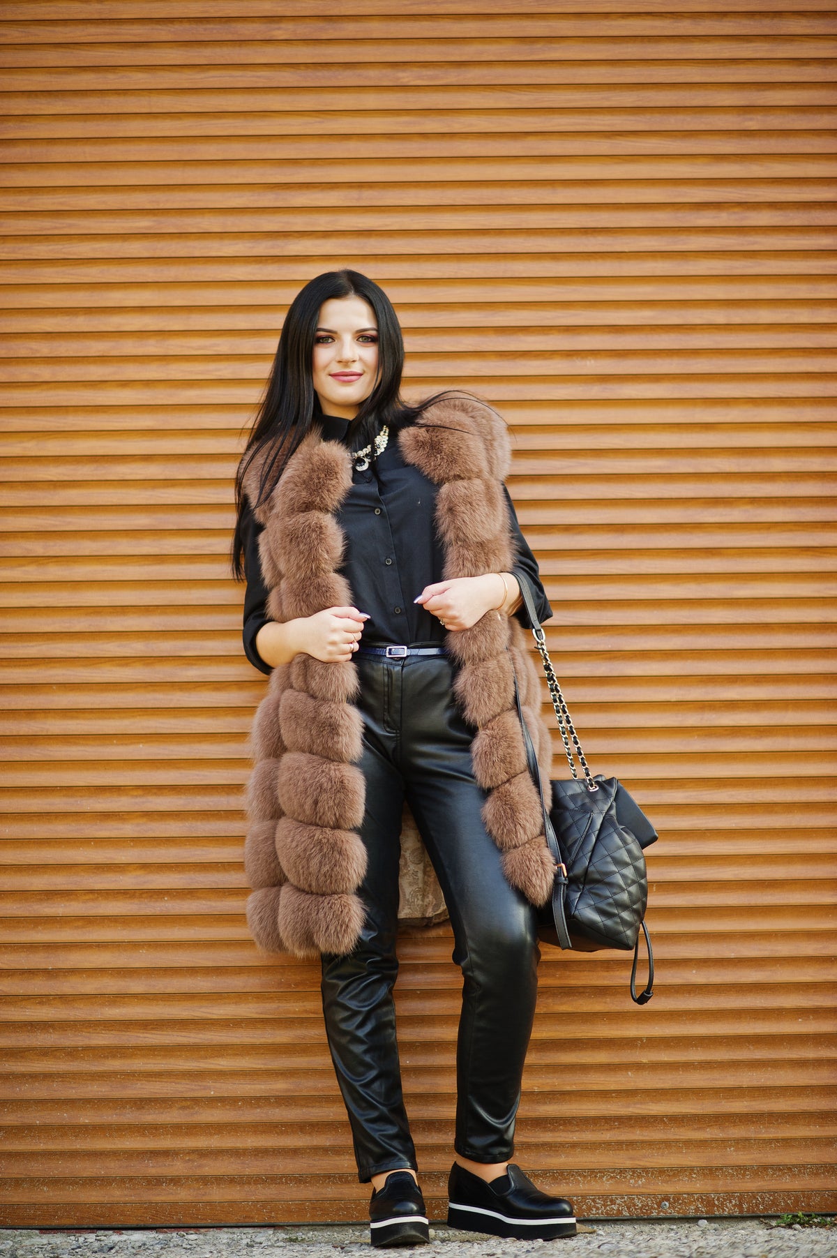 Women’s Black Leather Biker Jacket with Faux Fur Collar