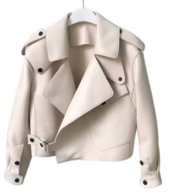 Women's White Leather Jacket – Minimalist Slim Fit Design